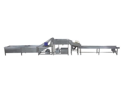 机架采用SUS304不锈钢制作,符合国家食品出口标准,流水线中各单机可根据用户各自不同的加工特点量身定制,满足工艺要求,清洗机采用高压气泡水浴清洗,清洗能力大,洗净率高且不损伤物料。经过旋翻至输送网带,在网带上进行高压水流清洗而后传送到挑选平台,进行公共分拣。