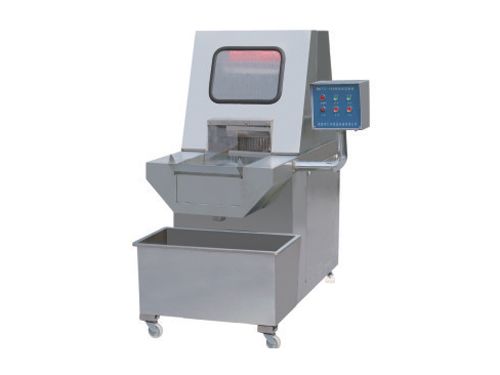 盐水注射机是将由盐水及辅料配置的腌渍液均匀的注射到肉块中,使肉质嫩化、松软,提高了肉制品的口味和出品率,可根据不同工艺要求,调整步进速度,步进距离,压肉板间隙及注射压力,将腌渍液均匀连续地注入肉中,达到理想的注射效果。