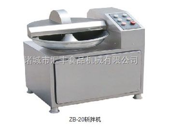斩拌机是利用高速旋转的斩切将肉斩成颗粒状或肉糜状,还可以将肉、辅料、冰片、水一起搅拌成均匀的乳化物。本公司生产的斩拌机的刀速、锅速、斩刀与转锅的间隙达到适宜的组合,使斩切产品细度好、升温小、斩拌时间短。