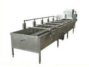酱菜清洗机以高压风机风力或水泵的压力使水产生强烈搅拌运动,使物料在水中翻滚,从而达到清洗果蔬效果的专用机械,广泛适用于中小规格果蔬的清洗(与水果外形无关),节水效果显著。结构特征与工作原理该机由机架、水箱、风机(水泵)、提升机、循环冲洗水泵、传动部分等几部分组成。酱菜清洗机在沉淀杂质的处理上,独特的过滤水箱设计,通过循环水泵的水循环,让杂质进入过滤箱,三次过滤让杂质留在水箱处,漂浮物通过上端的溢水口排出,漂流不出的通过弧形过滤网阻拦,保证水池干净的同时,能够及时的排除杂质,保证产品清洗效果。